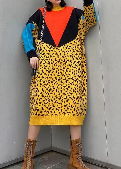 For Work yellow Sweater dresses Design patchwork Hipster spring knit dress